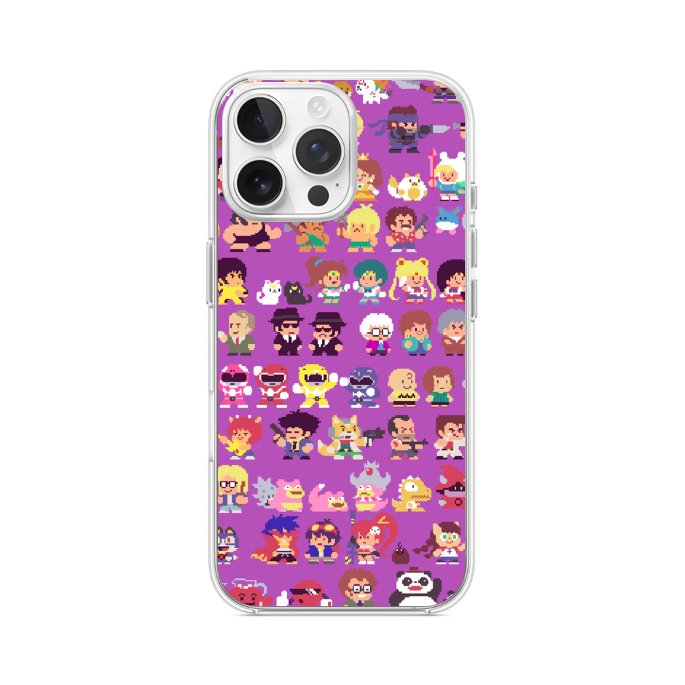 Verpixelte Cartoon Figuren iPhone 16 Pro Max MagSafe‑kompatible Silikonhülle mit Kamera‑Kickstand● Sehr robust & langlebig