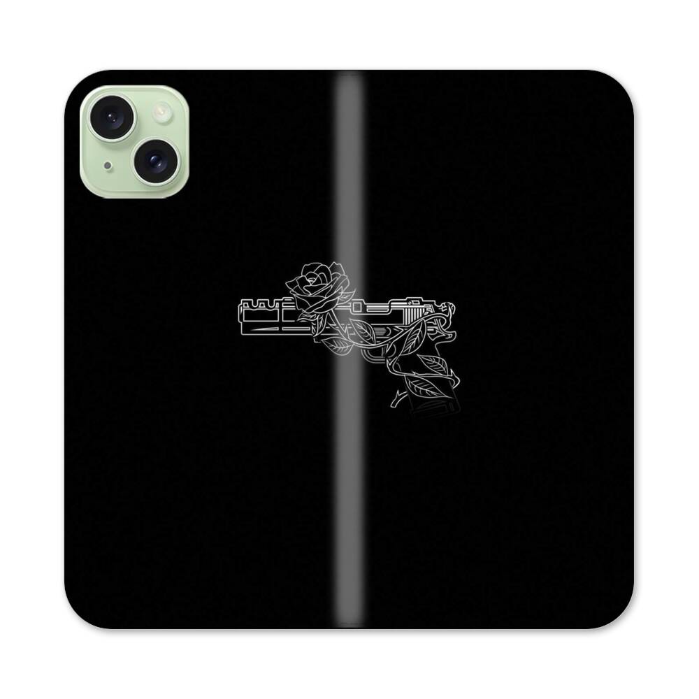 Pistole mit Rose Apple iPhone 15 Plus Flip Case● Seitlich klappbar