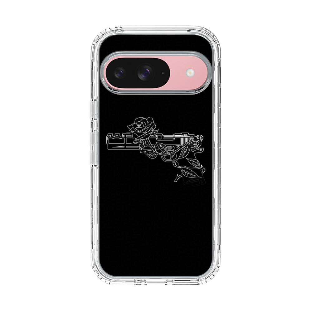 Pistole mit Rose Google Pixel 9 Silikon Hülle● Sehr robust & langlebig