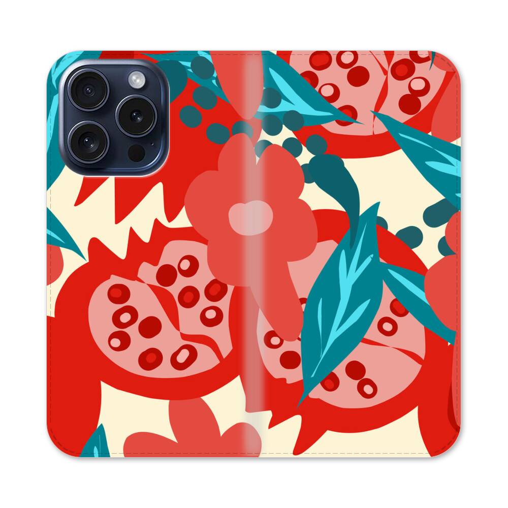 Rote Granatäpfel Apple iPhone 15 Pro Flip Case● Seitlich klappbar
