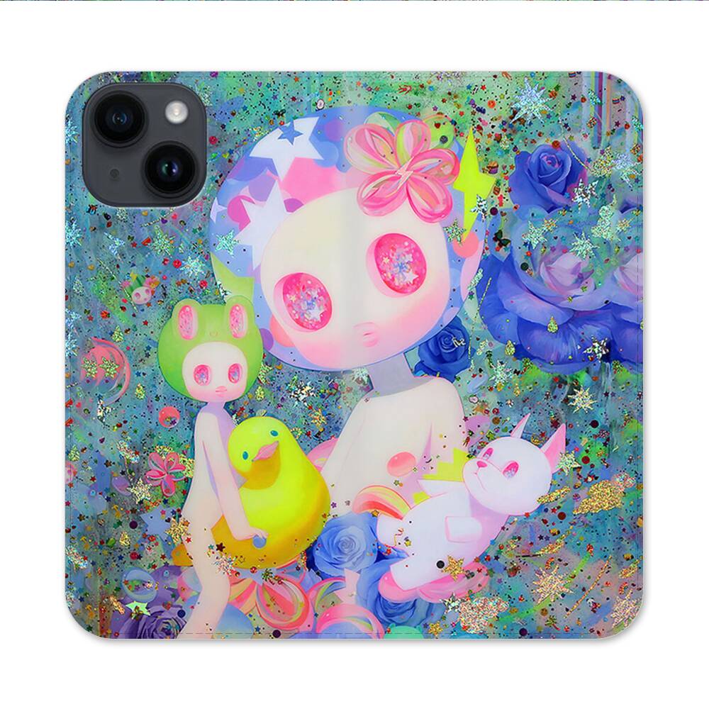 Puppe mit Entenküken Apple iPhone 14 Flip Case● Seitlich klappbar