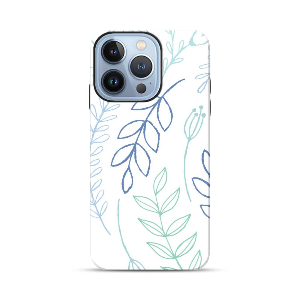 Hand Gezeichnete Blätter Apple iPhone 13 Pro Hybrid Case● Rundum bedruckbar