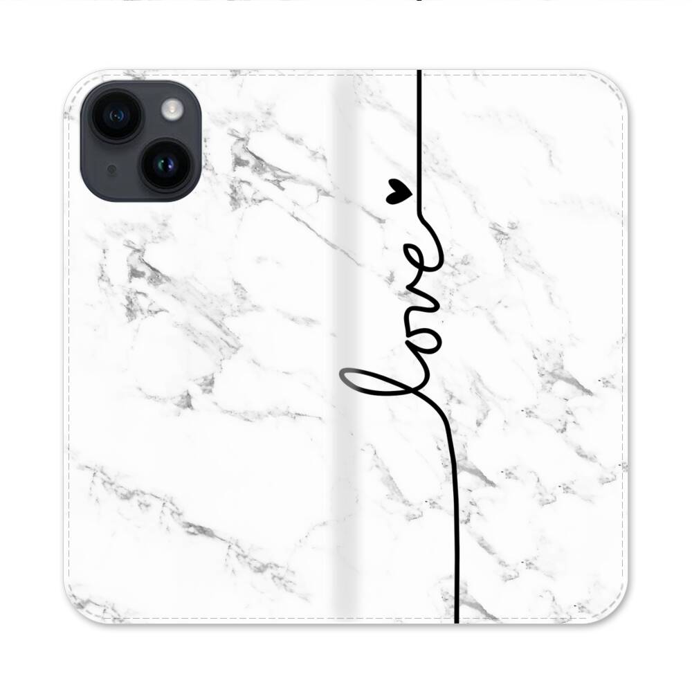 Liebesherz Weißer Marmor Apple iPhone 14 Flip Case● Seitlich klappbar