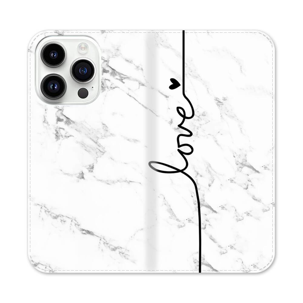 Liebesherz Weißer Marmor Apple iPhone 14 Pro Flip Case● Seitlich klappbar