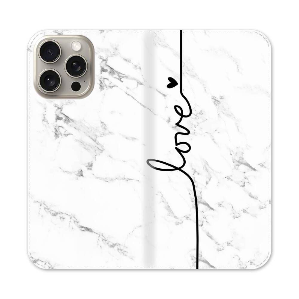 Liebesherz Weißer Marmor Apple iPhone 15 Pro Max Flip Case● Seitlich klappbar