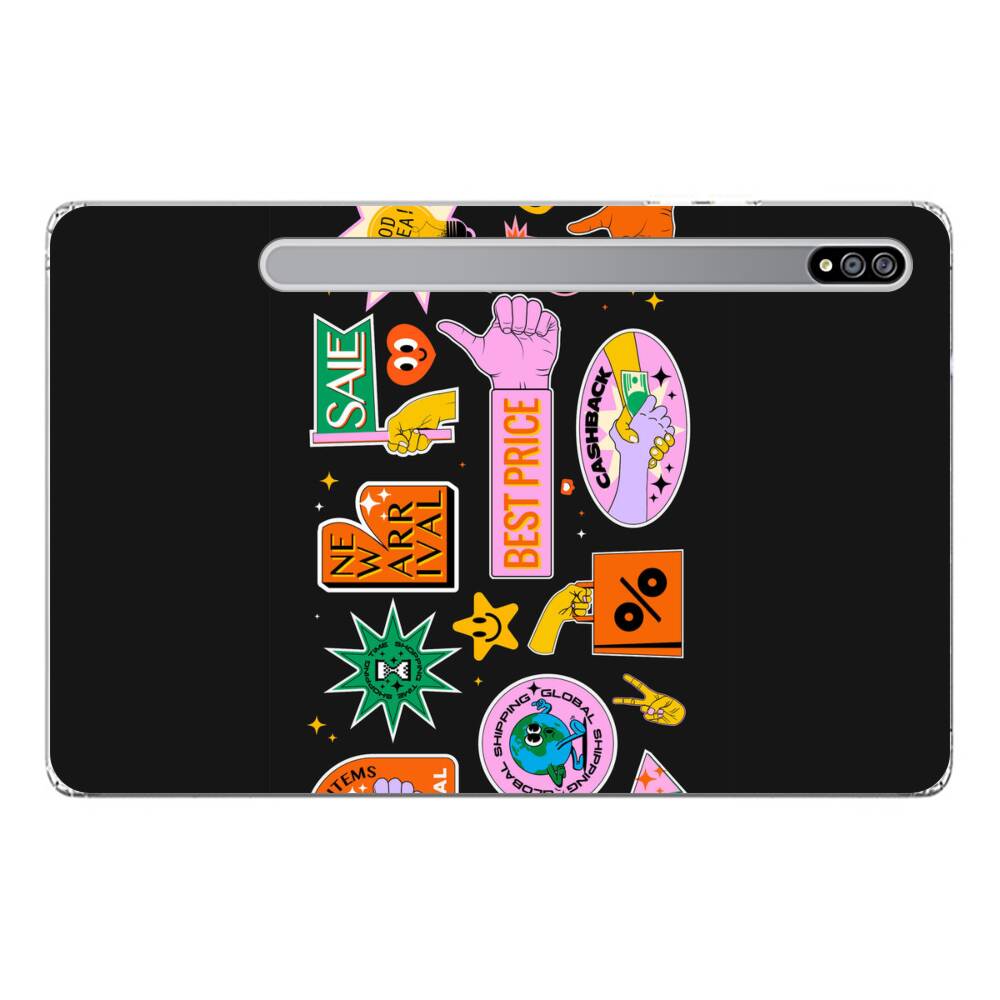 Cartoon Logo Stickers Samsung Galaxy Tab S7 Plus Silikon Hülle● Sehr robust & langlebig