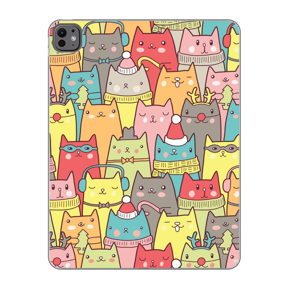 Nahtlose Cartoon Katze Apple iPad Pro 13 (2025/2024) Silikon Hülle● Sehr robust & langlebig