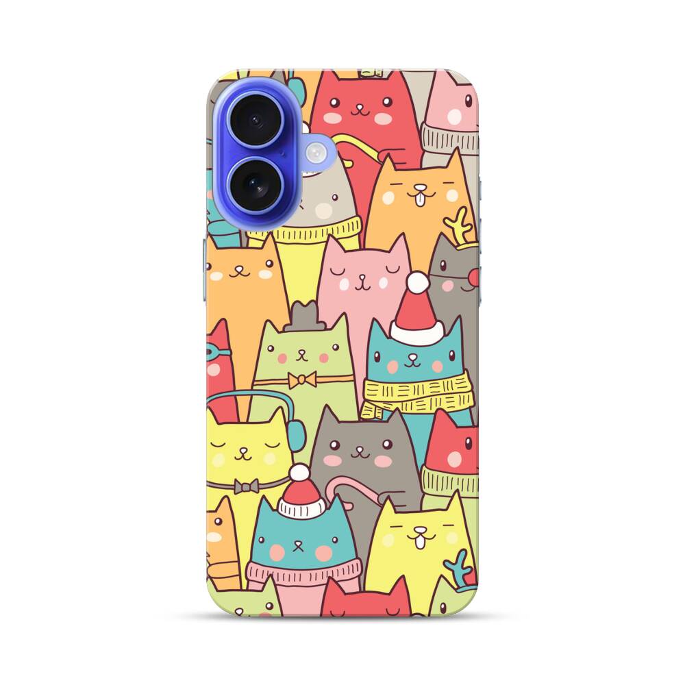 Nahtlose Cartoon Katze Apple iPhone 16 Hülle● Rundum bedruckbar