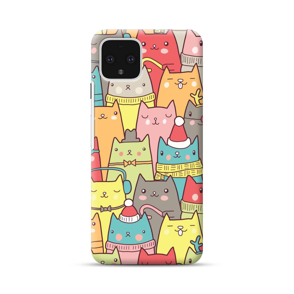 Nahtlose Cartoon Katze Google Pixel 4 Hülle● Rundum bedruckbar