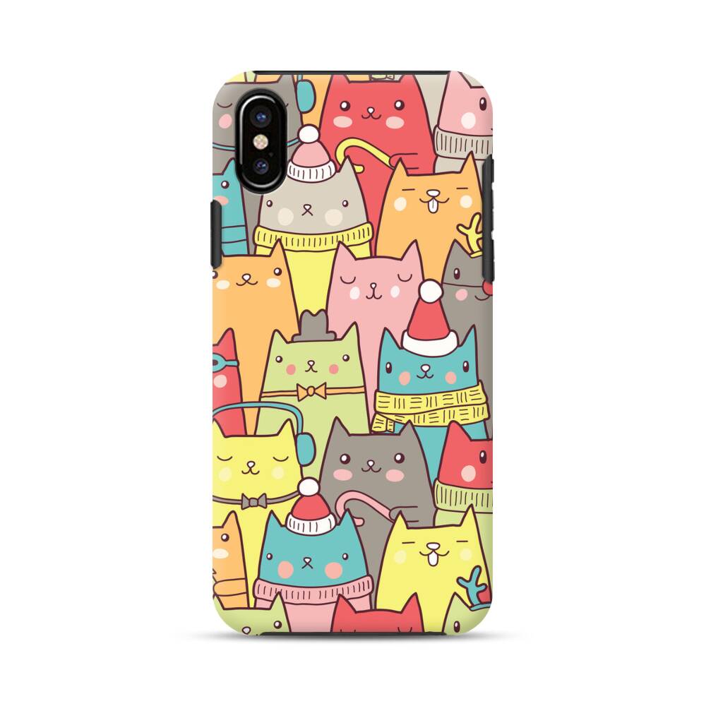 Nahtlose Cartoon Katze iPhone X Hybrid Hülle● Rundum bedruckbar
