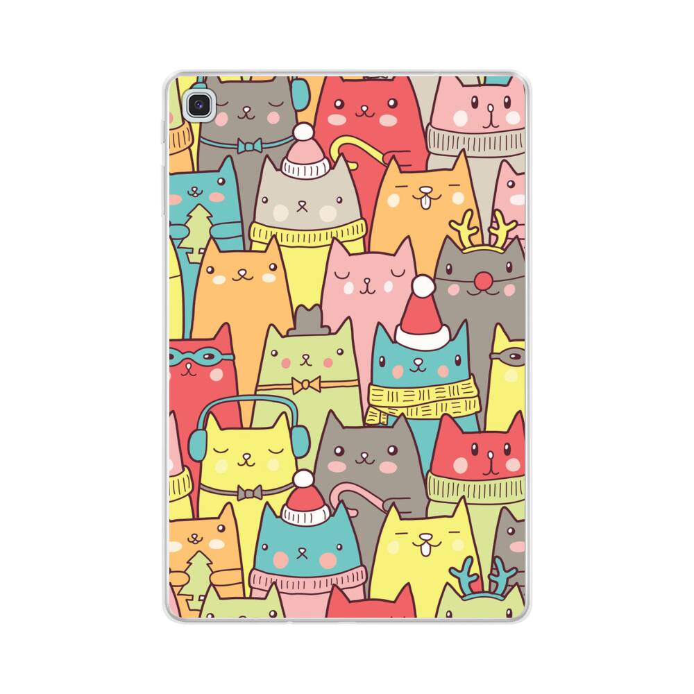 Nahtlose Cartoon Katze Samsung Galaxy Tab S6 Lite Silikon Hülle● Sehr robust & langlebig