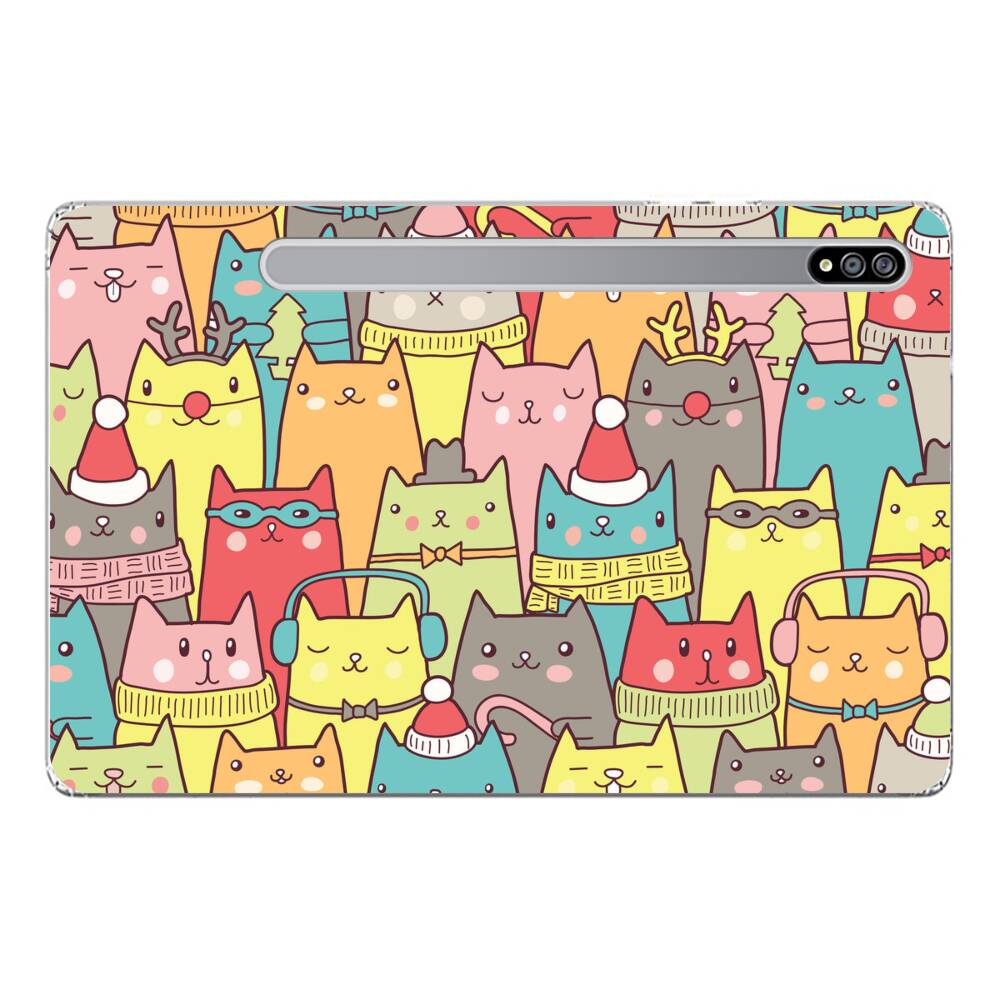 Nahtlose Cartoon Katze Samsung Galaxy Tab S7 Silikon Hülle● Sehr robust & langlebig