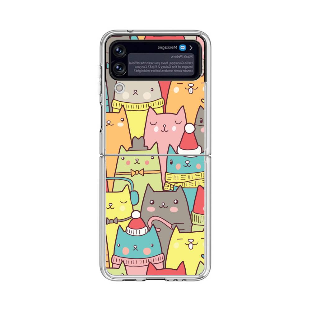 Nahtlose Cartoon Katze Samsung Galaxy Z Flip 4 Silikon Hülle● Sehr robust & langlebig