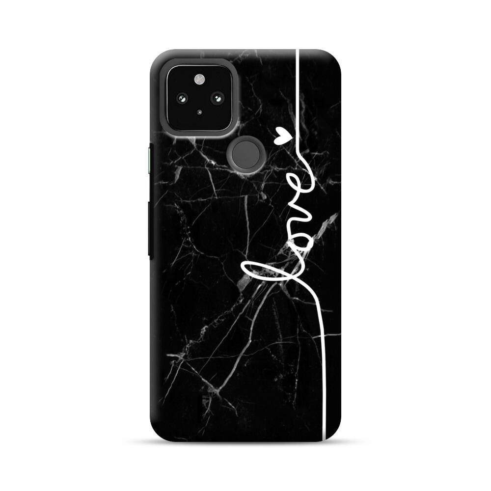 Liebesherz Schwarzer Marmor Google Pixel 5 Hülle● Rundum bedruckbar