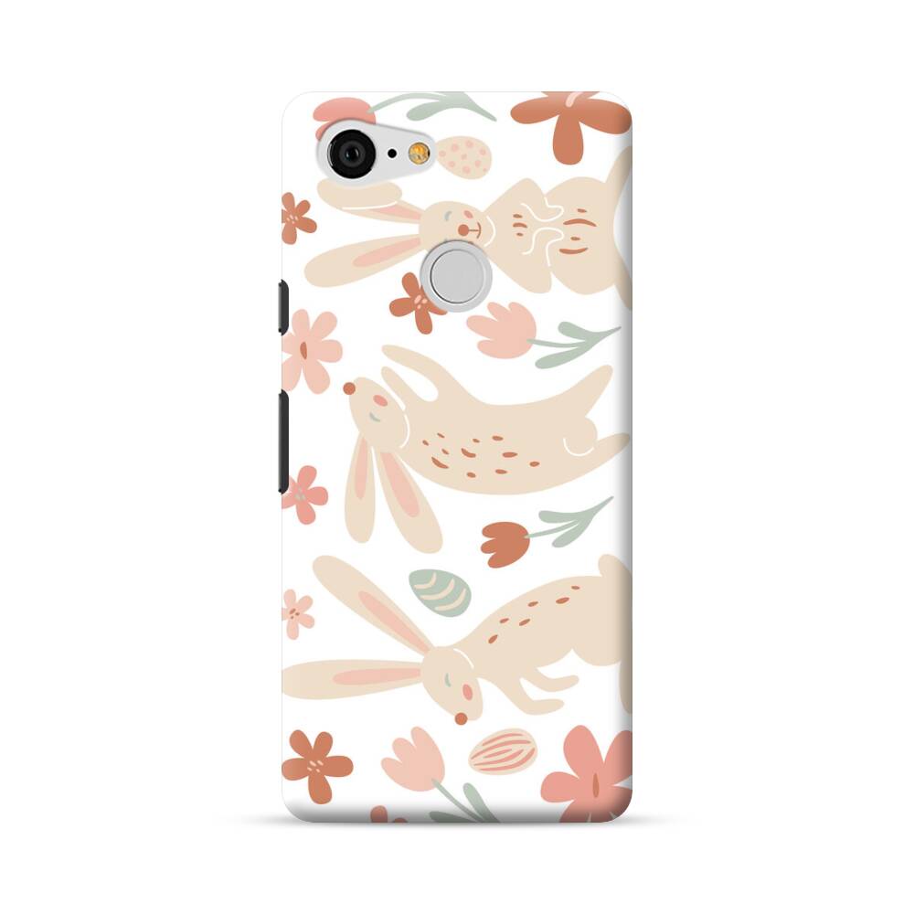 Cartoon Hasen Und Blumen Google Pixel 3 Hülle● Rundum bedruckbar