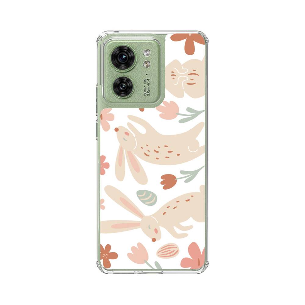 Cartoon Hasen Und Blumen Motorola Edge 40 Silikon Hülle● Sehr robust & langlebig