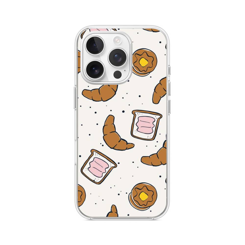 Croissant und Toast iPhone 14 Pro MagSafe‑kompatible Silikonhülle mit Kamera‑Kickstand● Sehr robust & langlebig