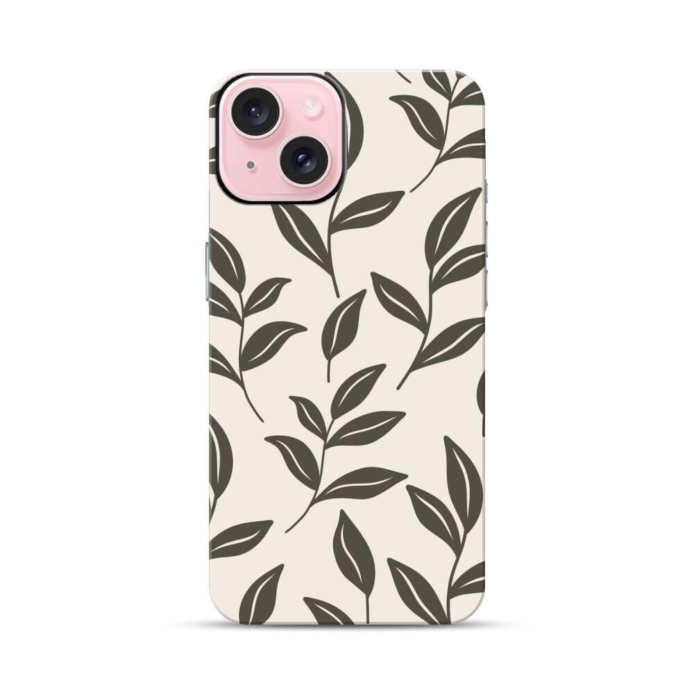 Graue Blätter Apple iPhone 15 Hybrid Case● Rundum bedruckbar