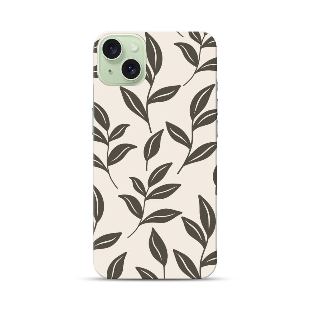 Graue Blätter Apple iPhone 15 Plus Hülle● Rundum bedruckbar
