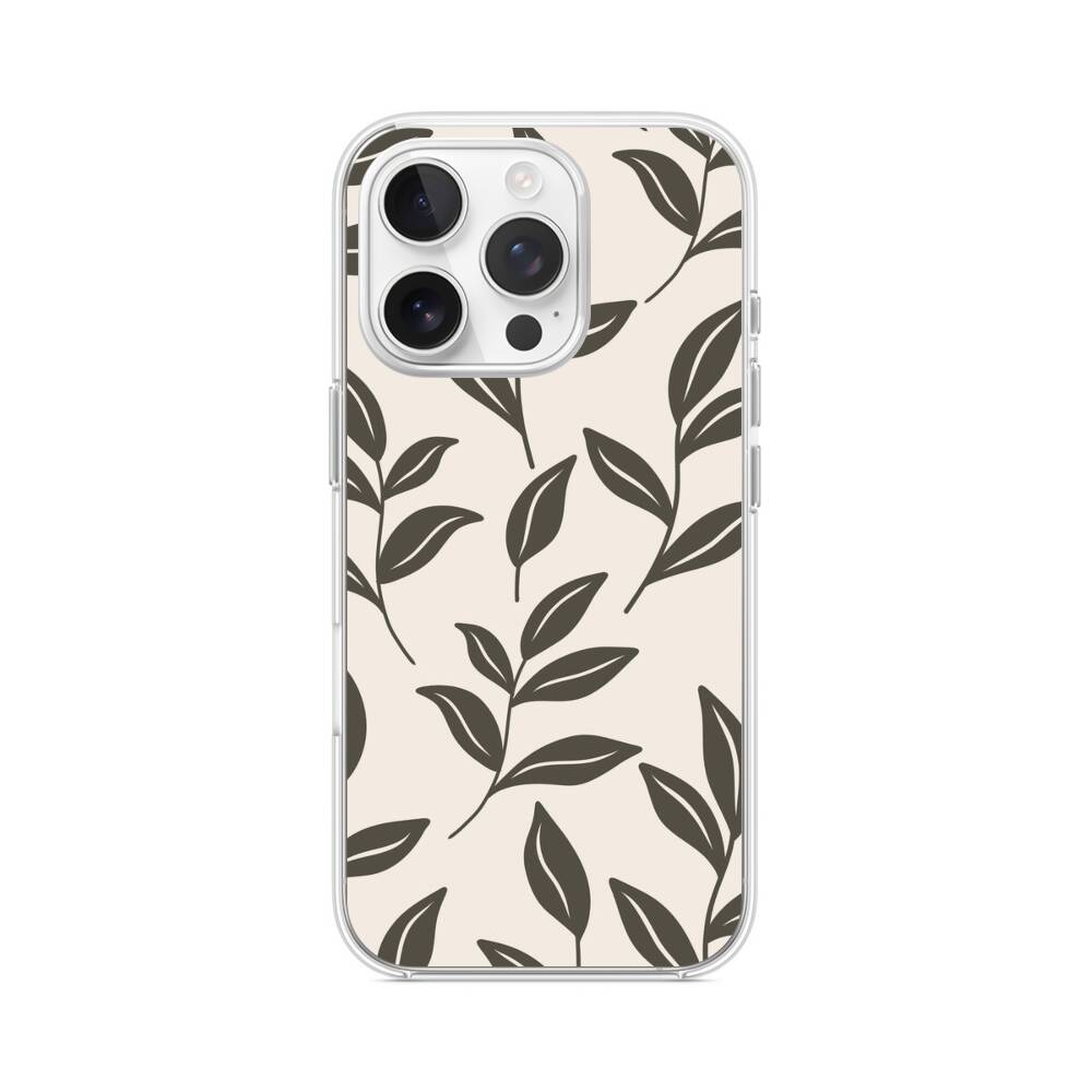 Graue Blätter iPhone 15 Pro MagSafe‑kompatible Silikonhülle mit Kamera‑Kickstand● Sehr robust & langlebig