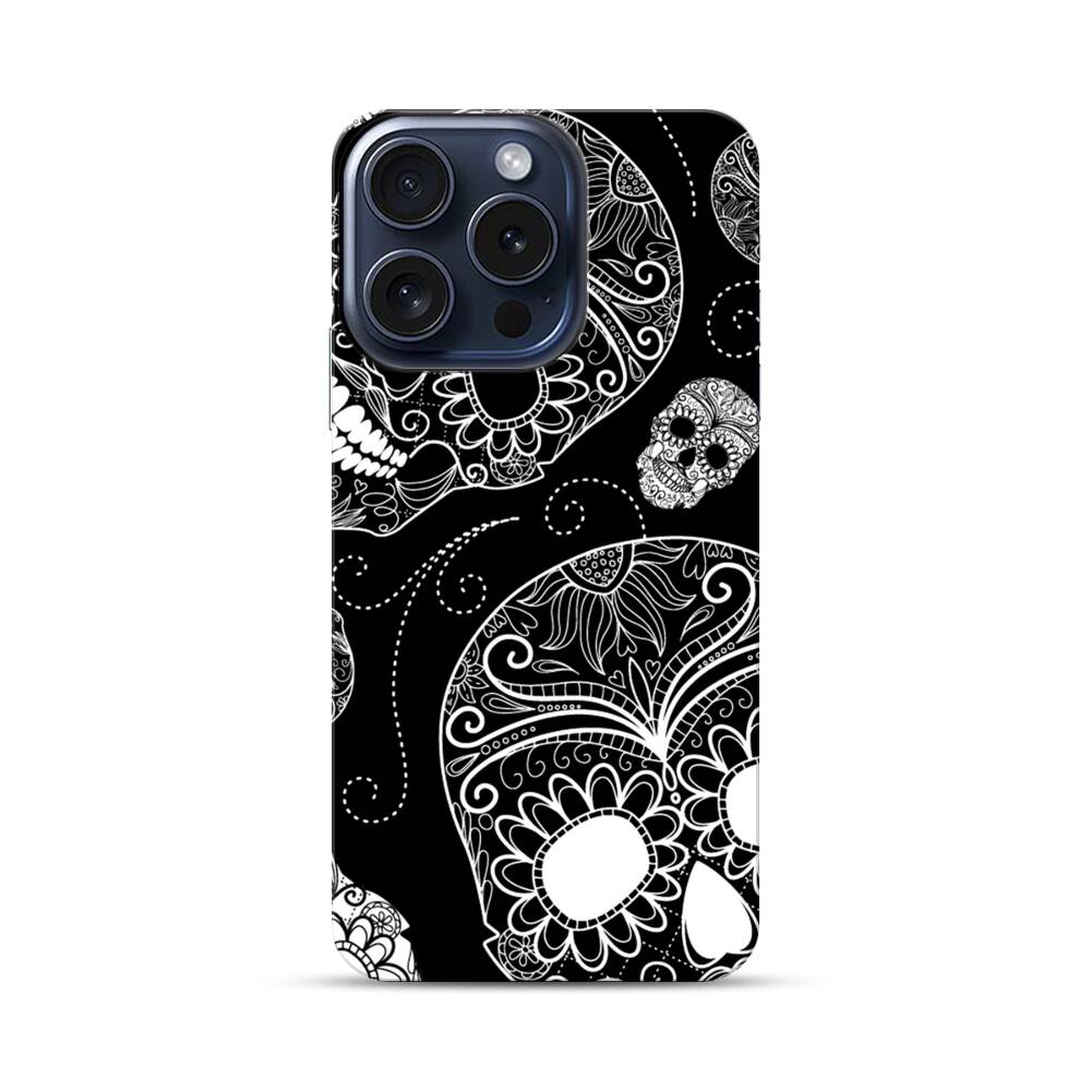 Blumenschädel Apple iPhone 15 Pro Hybrid Case● Rundum bedruckbar