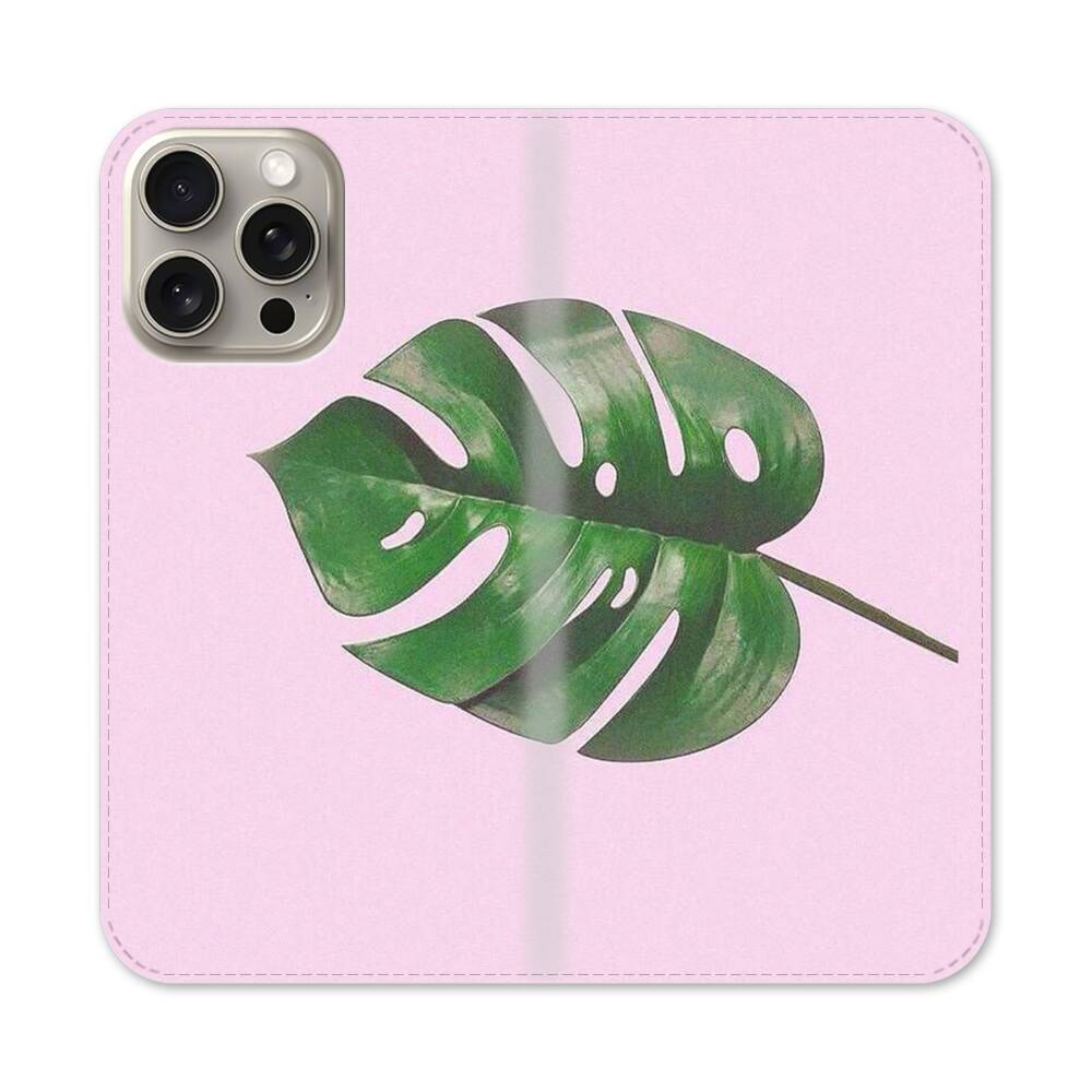 Tropische Blätter Apple iPhone 15 Pro Max Flip Case● Seitlich klappbar