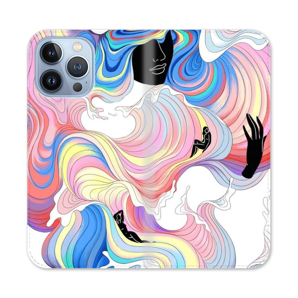 Bunte Haare Wellen Apple iPhone 13 Pro Flip Case● Seitlich klappbar