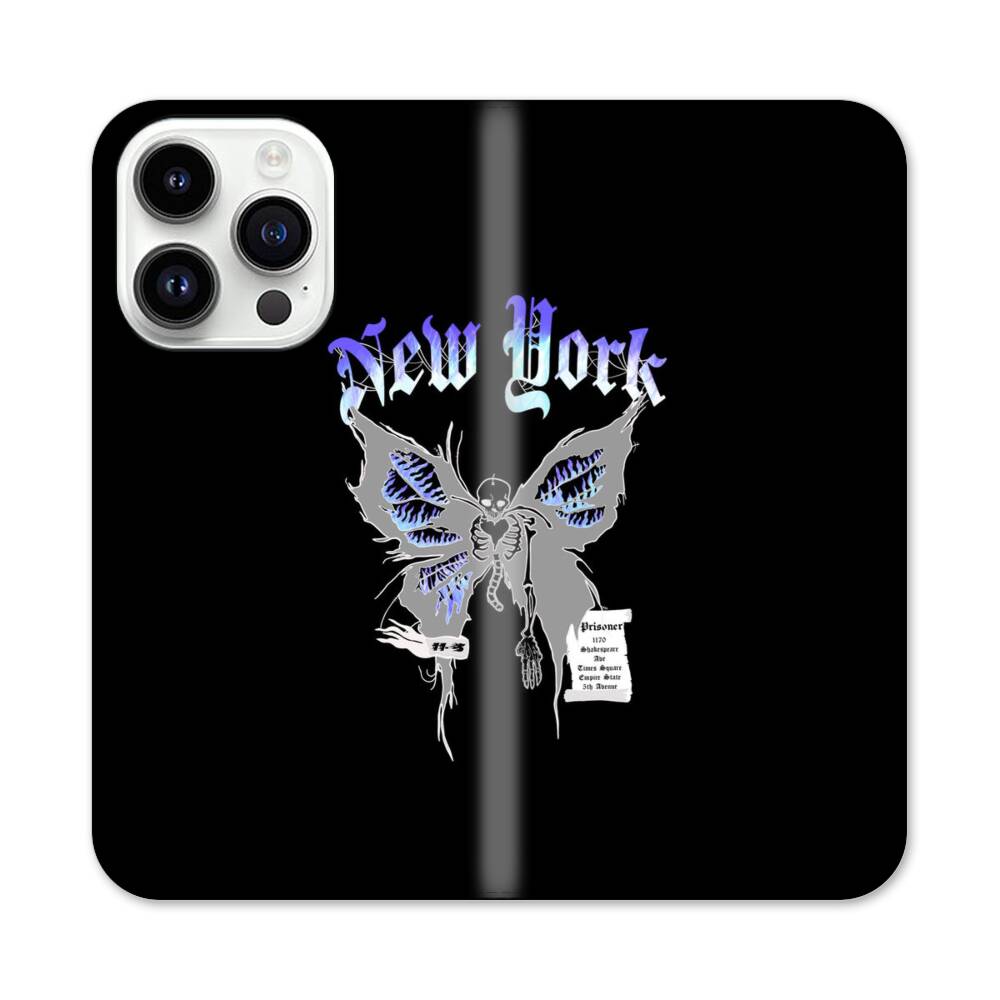 New York Schmetterling Apple iPhone 14 Pro Flip Case● Seitlich klappbar