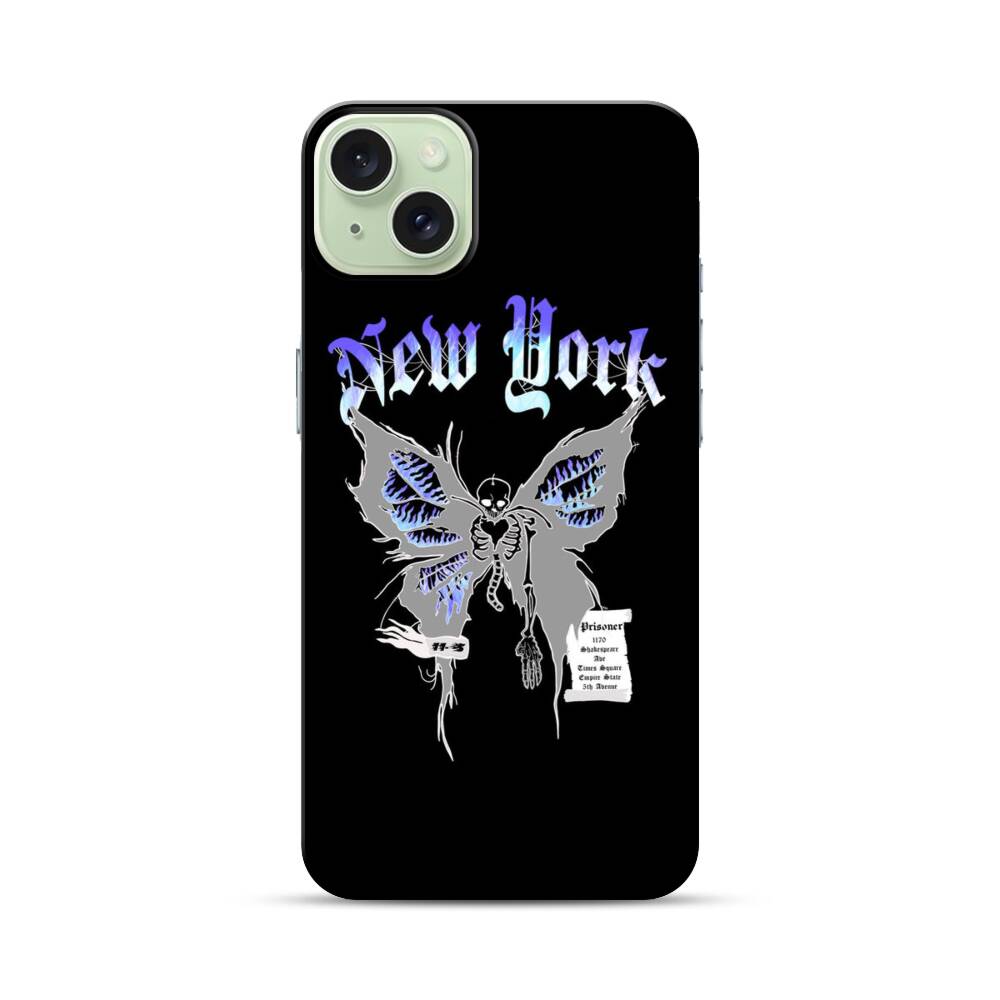 New York Schmetterling Apple iPhone 15 Plus Hybrid Case● Rundum bedruckbar