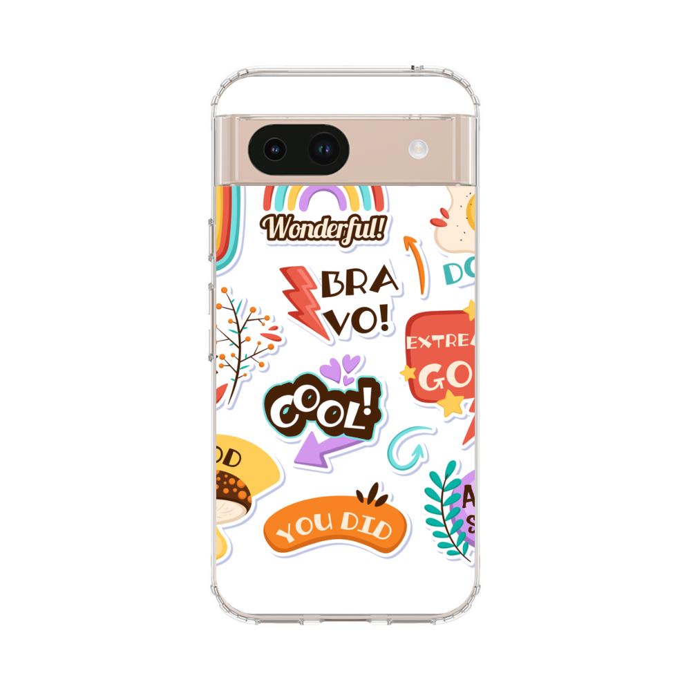 Verschiedene Cartoon Aufkleber Google Pixel 8a Silikon Hülle● Sehr robust & langlebig