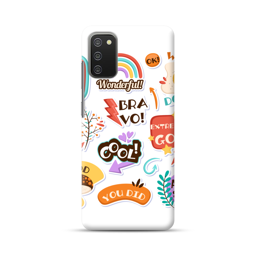 Verschiedene Cartoon Aufkleber Samsung Galaxy A02s Hülle● Rundum bedruckbar