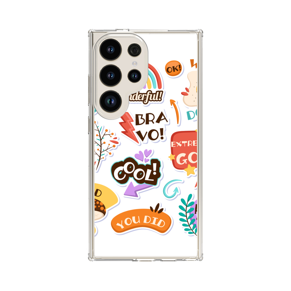 Verschiedene Cartoon Aufkleber Samsung Galaxy S24 Ultra Silikon Hülle● Sehr robust & langlebig