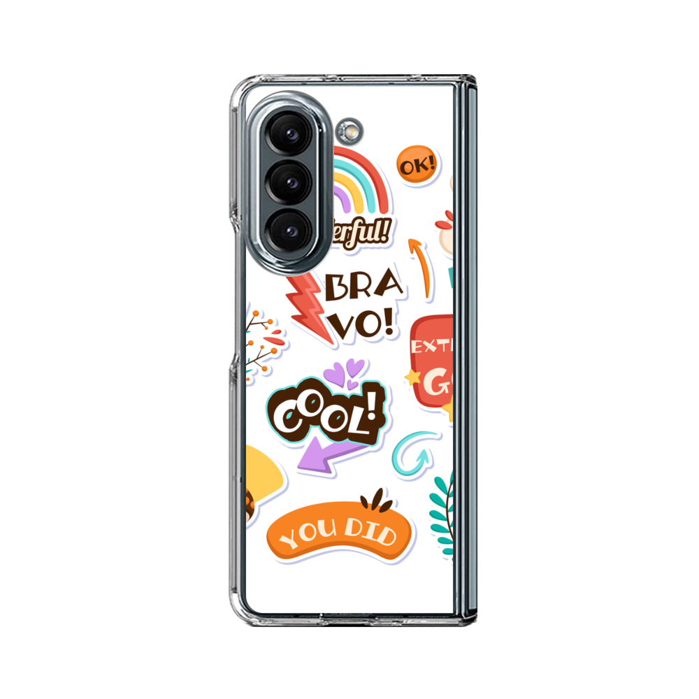 Verschiedene Cartoon Aufkleber Samsung Galaxy Z Fold 5 Silikon Hülle● Sehr robust & langlebig