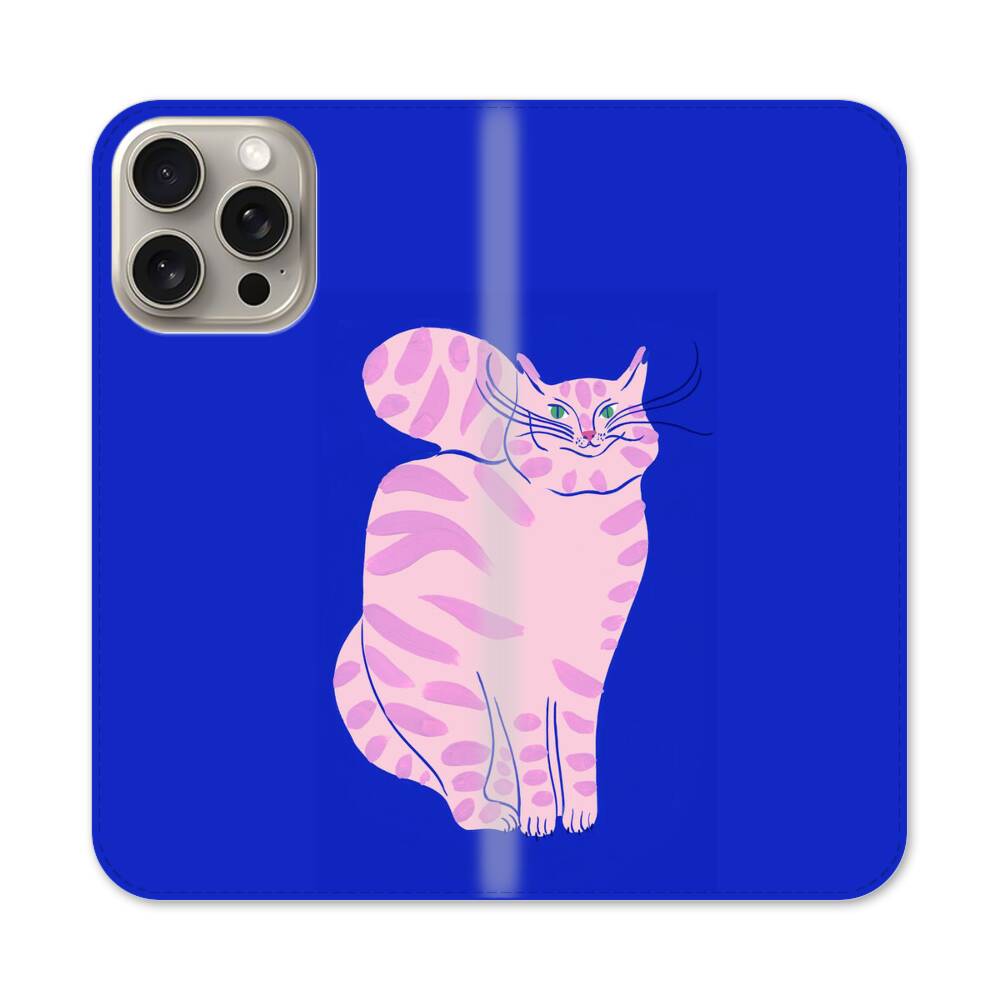 Pinke Katze Apple iPhone 15 Pro Max Flip Case● Seitlich klappbar