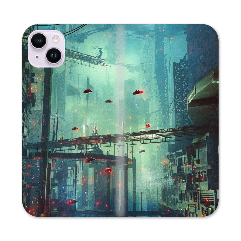 Cyberpunk Stadt Apple iPhone 14 Plus Flip Case● Seitlich klappbar