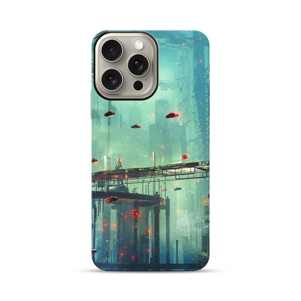 Cyberpunk Stadt Apple iPhone 15 Pro Max Hybrid Case● Rundum bedruckbar