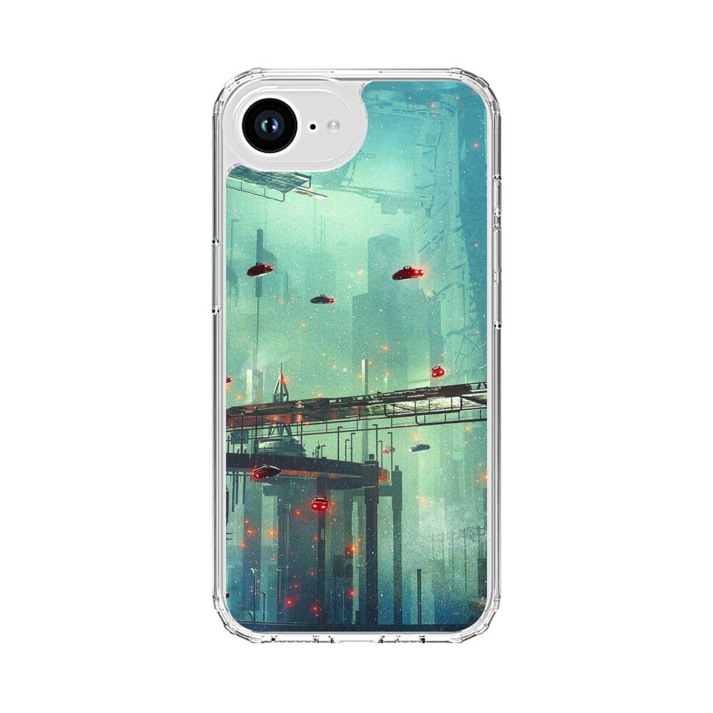 Cyberpunk Stadt Apple iPhone 16e Silikon Hülle● Sehr robust & langlebig