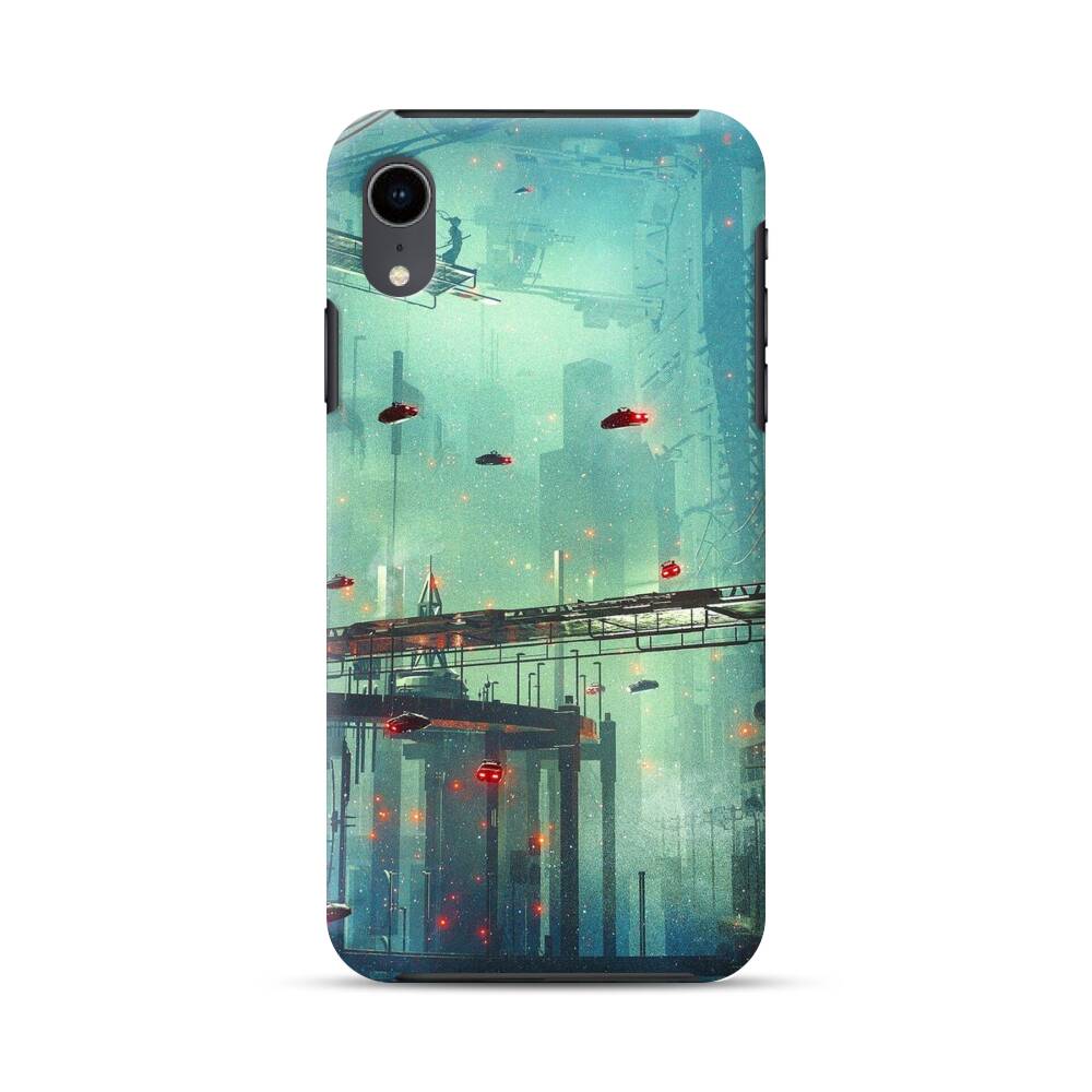 Cyberpunk Stadt iPhone XR Hybrid Hülle● Rundum bedruckbar