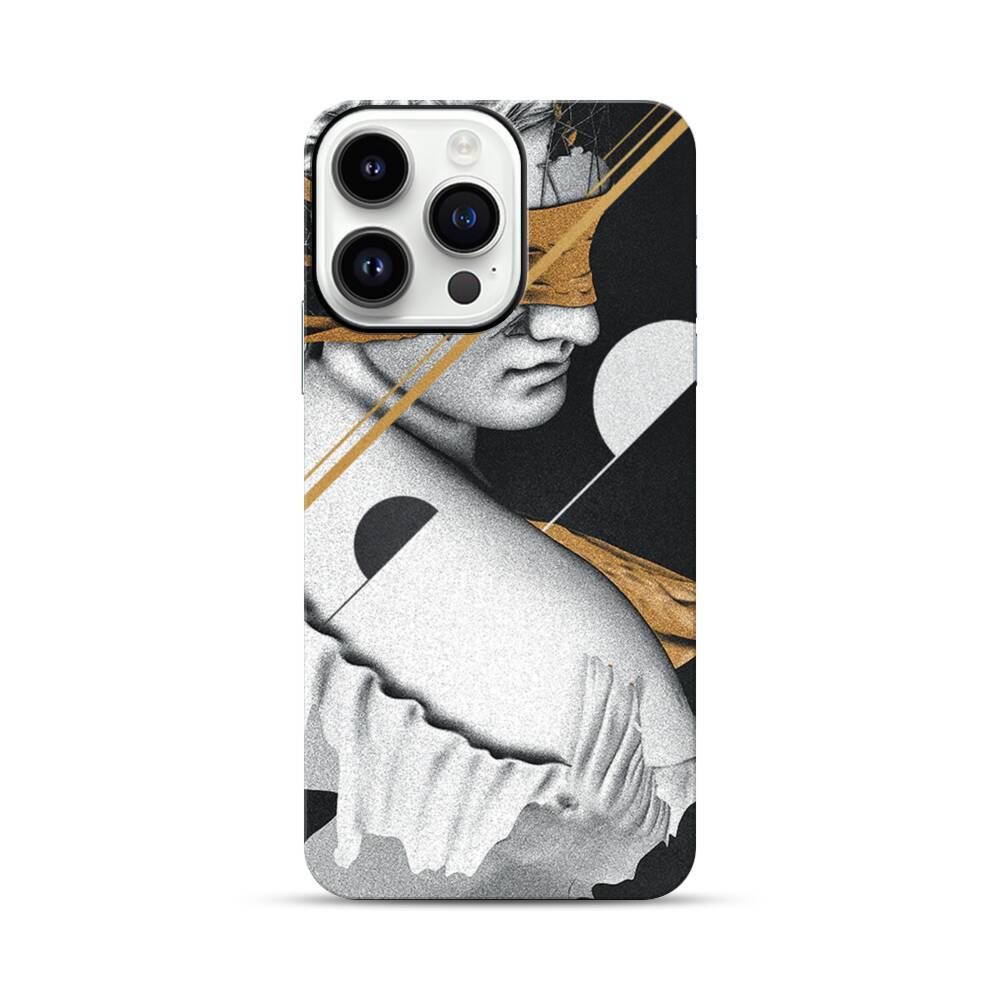 Statue Mit Verbundenen Augen Apple iPhone 14 Pro Max Hybrid Case● Rundum bedruckbar