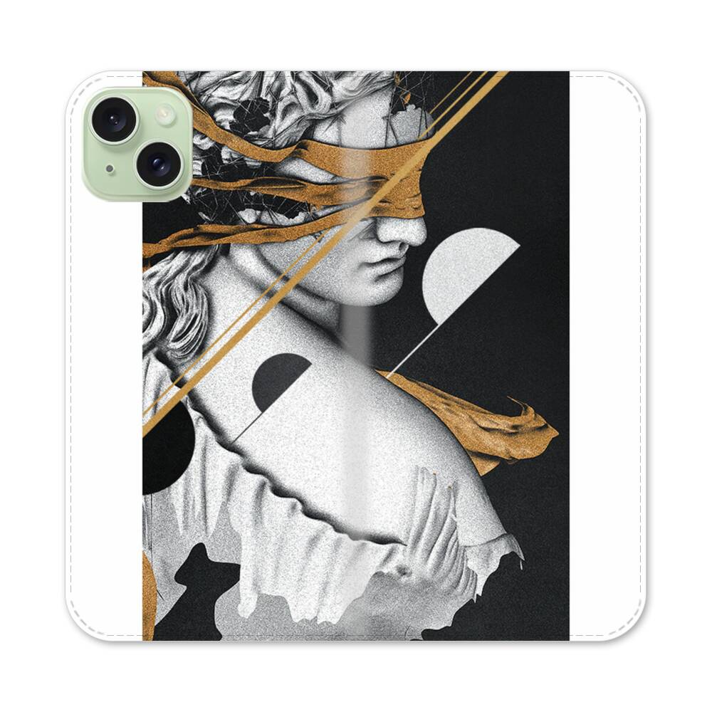 Statue Mit Verbundenen Augen Apple iPhone 15 Plus Flip Case● Seitlich klappbar