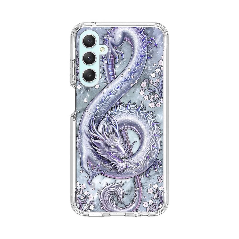 Silberer Drachen Samsung Galaxy A34 Silikon Hülle● Sehr robust & langlebig