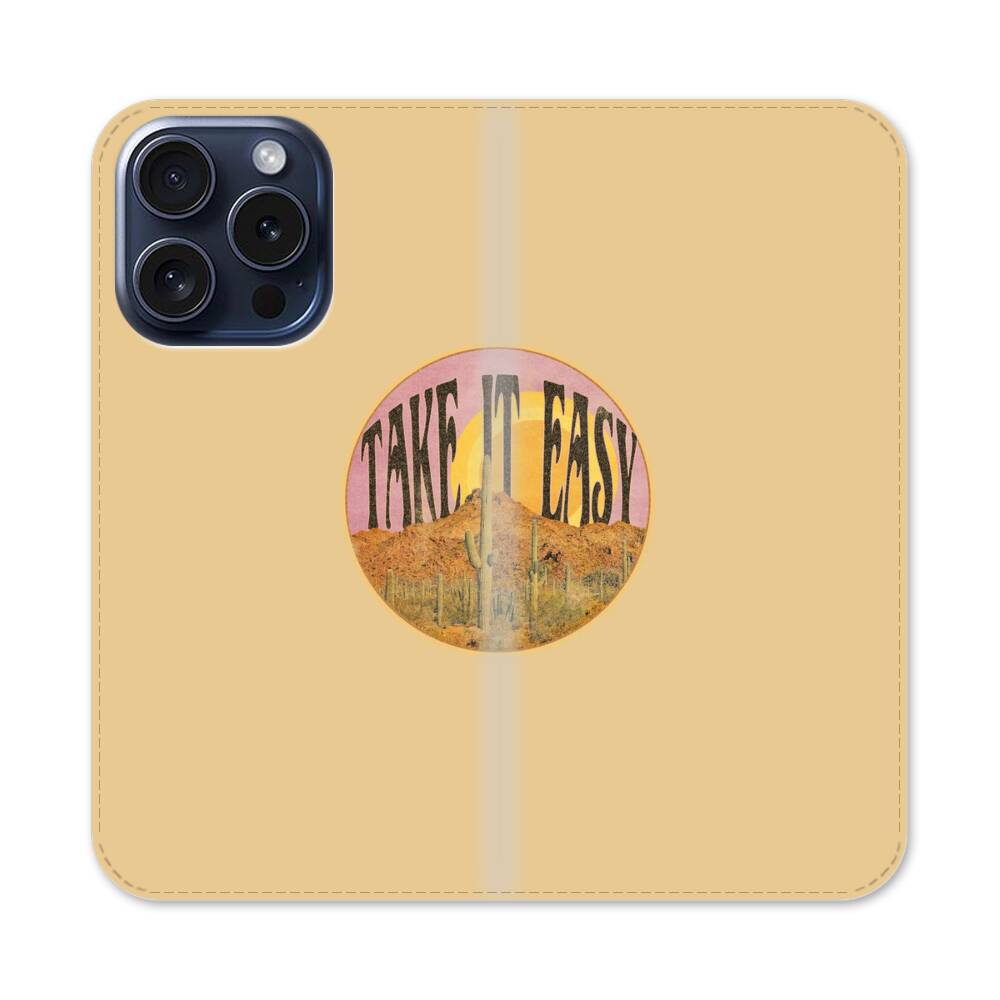 Wüste in der Retro Illustration Apple iPhone 15 Pro Flip Case● Seitlich klappbar