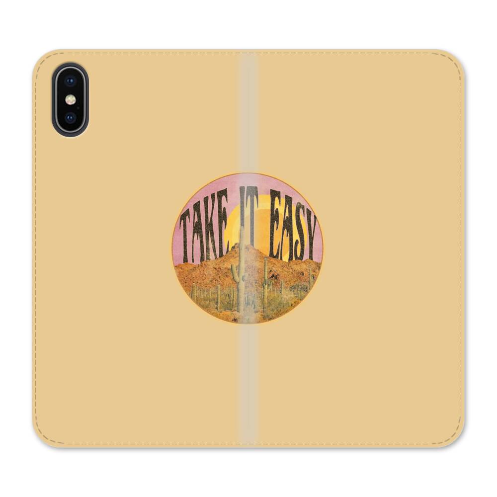 Wüste in der Retro Illustration iPhone XS Wallet Leder Hülle● Seitlich klappbar