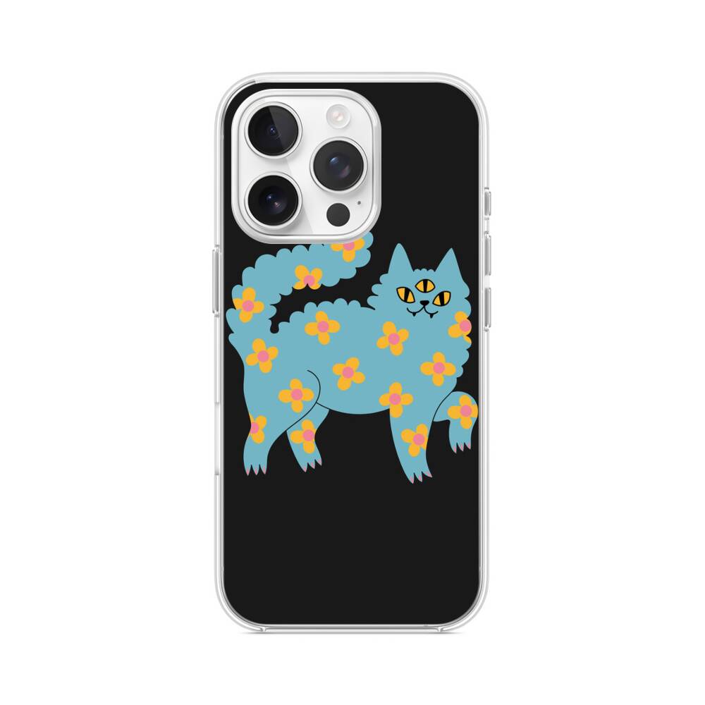 Kätzchen Blumen iPhone 15 Pro MagSafe‑kompatible Silikonhülle mit Kamera‑Kickstand● Sehr robust & langlebig