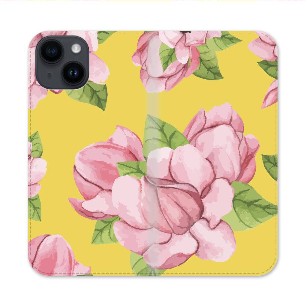 Pinke Rhododendren Apple iPhone 14 Flip Case● Seitlich klappbar