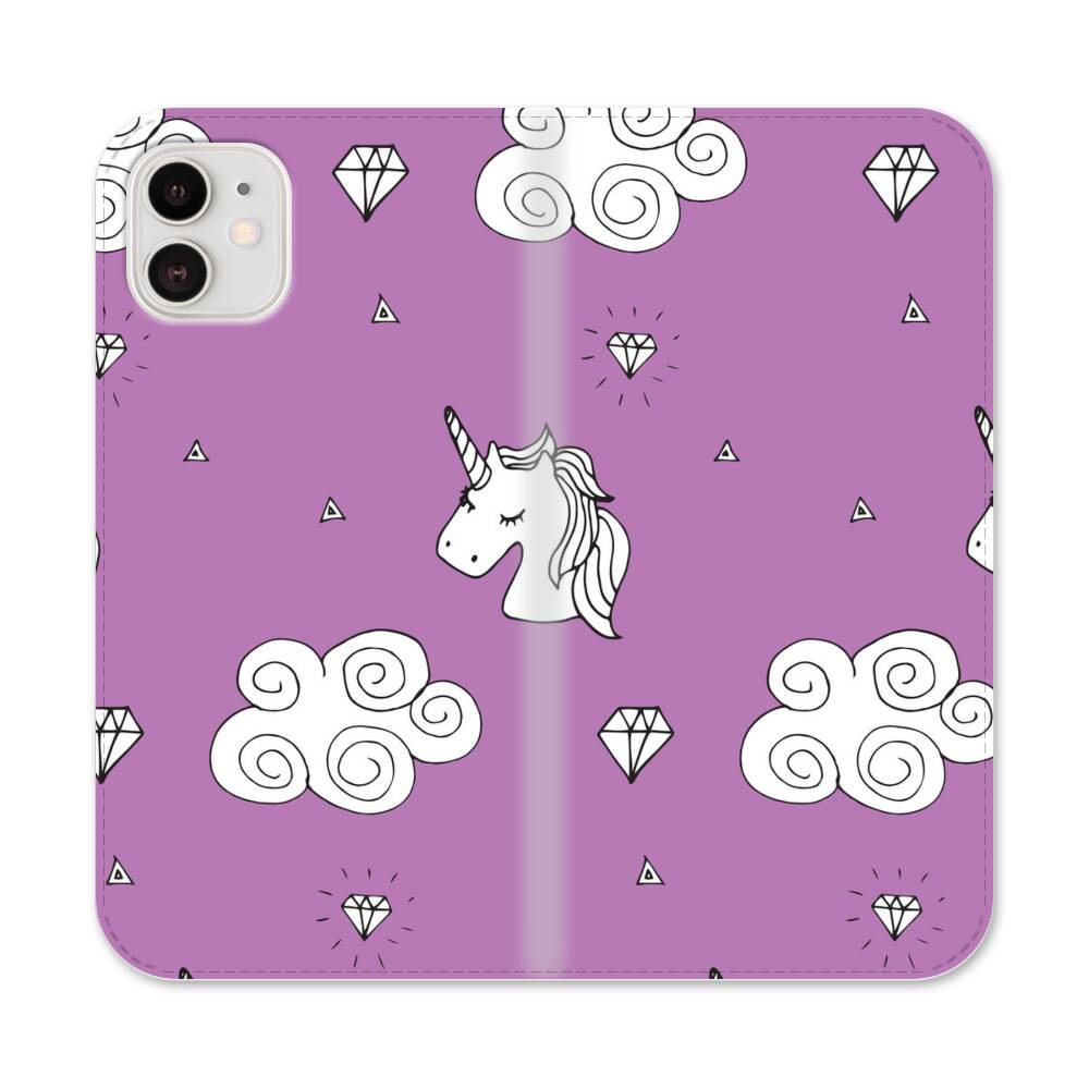 Niedliche Cartoon Einhörner Auf Wolke Apple iPhone 12 Flip Case● Seitlich klappbar