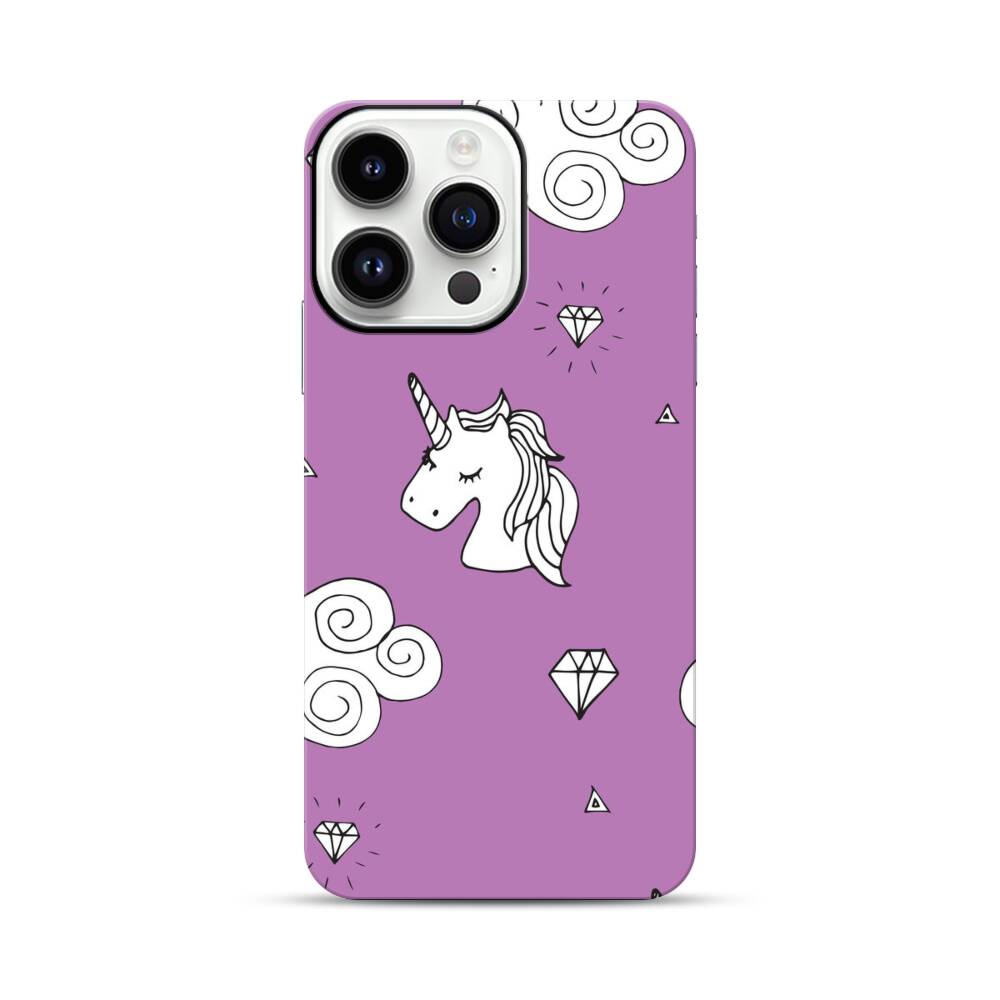 Niedliche Cartoon Einhörner Auf Wolke Apple iPhone 14 Pro Max Hybrid Case● Rundum bedruckbar