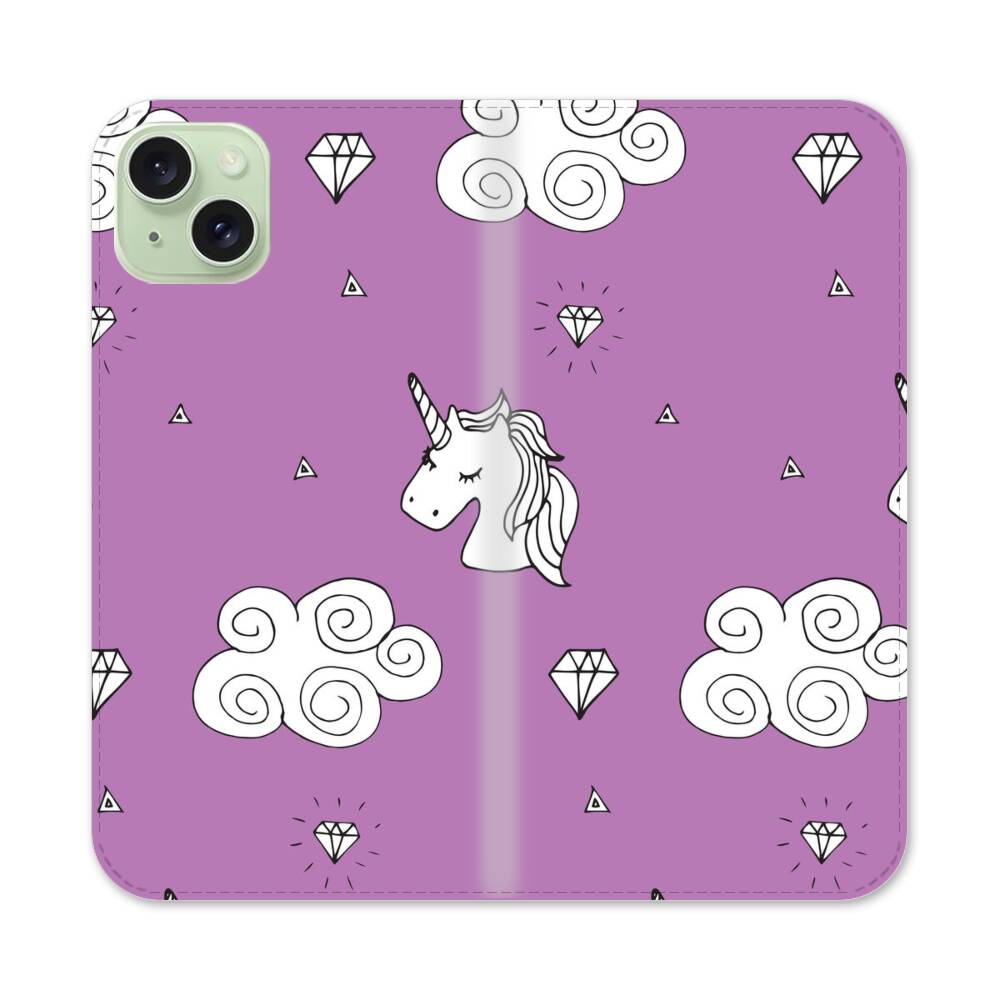 Niedliche Cartoon Einhörner Auf Wolke Apple iPhone 15 Plus Flip Case● Seitlich klappbar