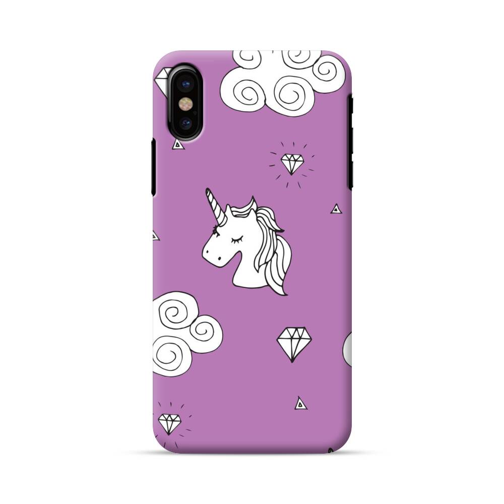 Niedliche Cartoon Einhörner Auf Wolke iPhone X Hülle● Rundum bedruckbar