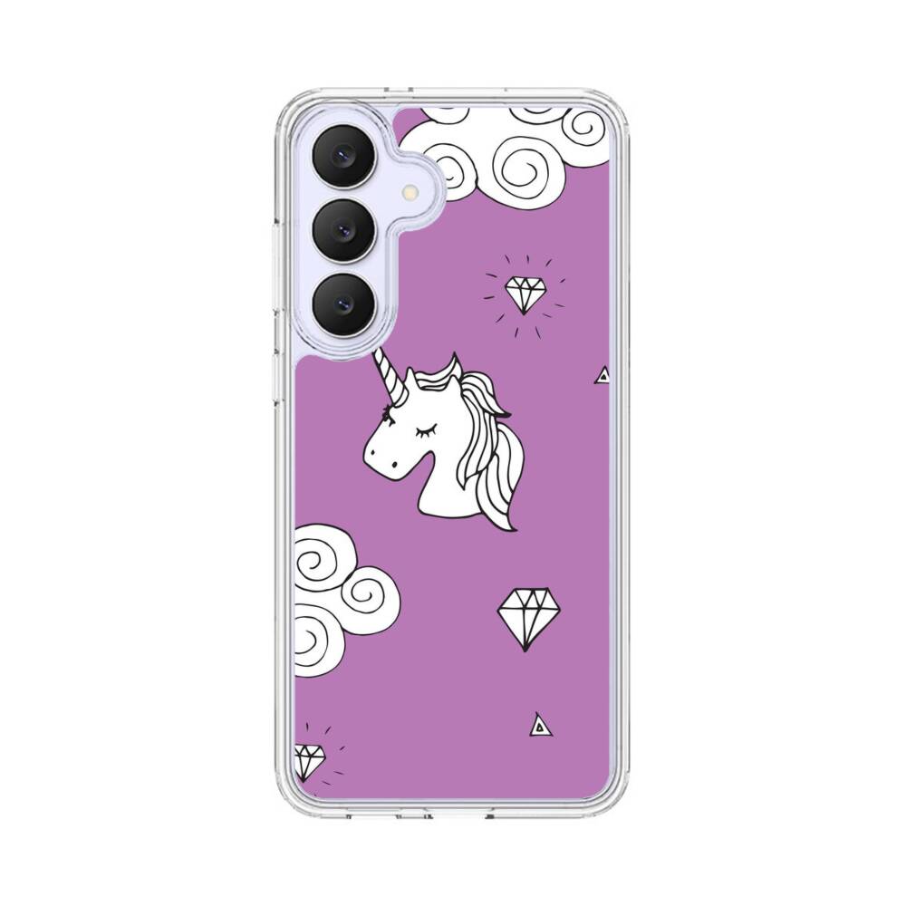 Niedliche Cartoon Einhörner Auf Wolke Samsung Galaxy S25 FE Silikon Hülle● Sehr robust & langlebig